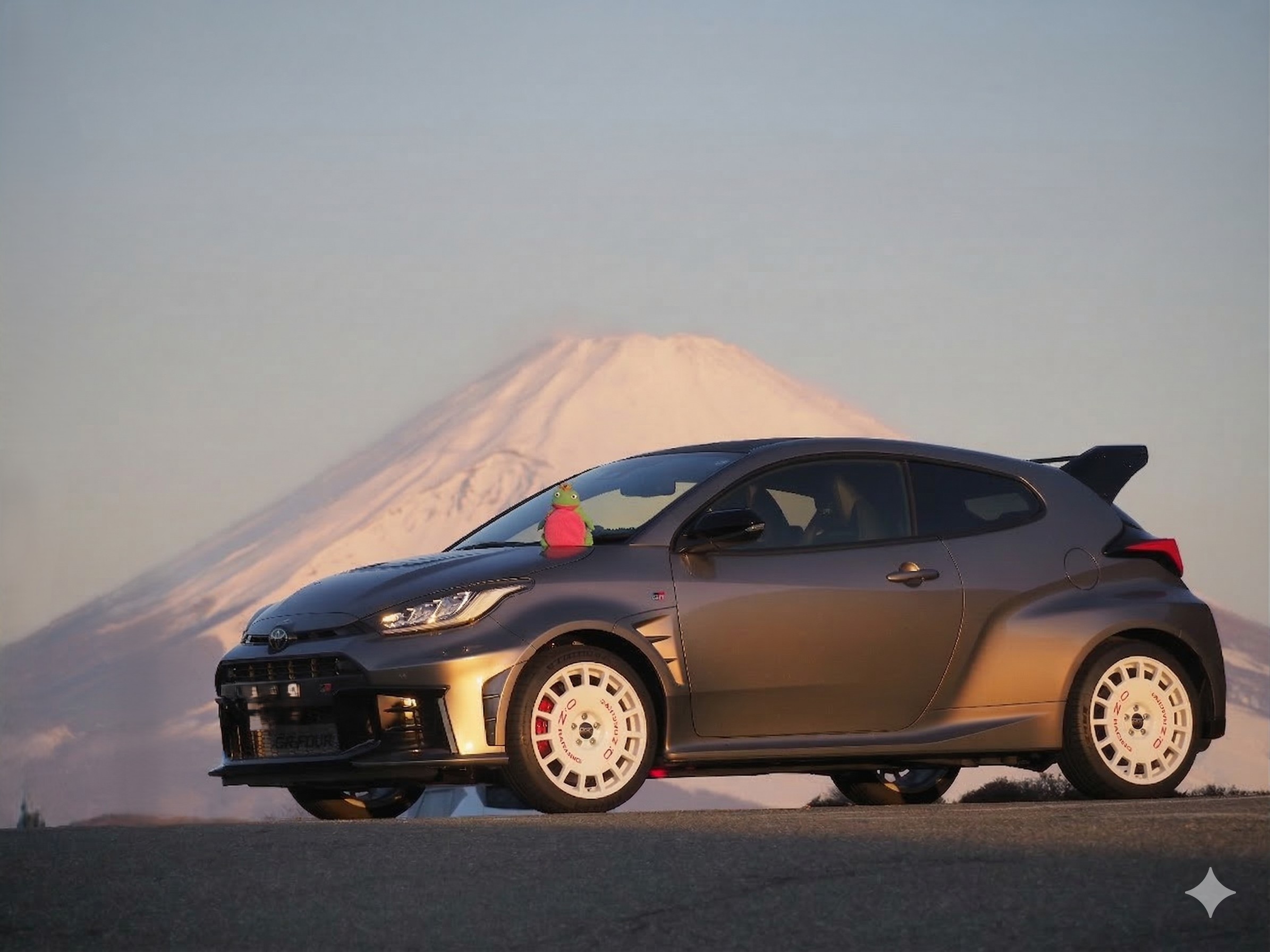 下はGoogleGeminiで合成したOZレーシングのラリー用の白。 GRヤリスの大径4ポットブレーキはブレンボ並みにブレーキダストが凄いので白いホイールは汚れが目立つでしょうね。JB23も白ホイールでブレンボだったので凄い有り様でしたhi。