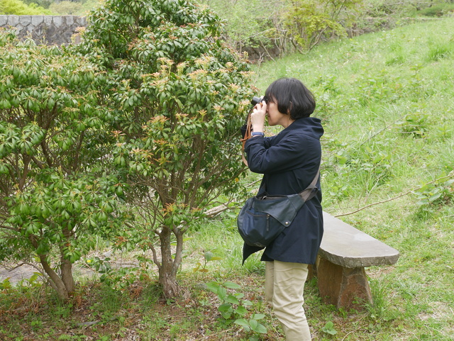7L2PGKがアセビを撮っているところ。 なんと利き目が左だったという。