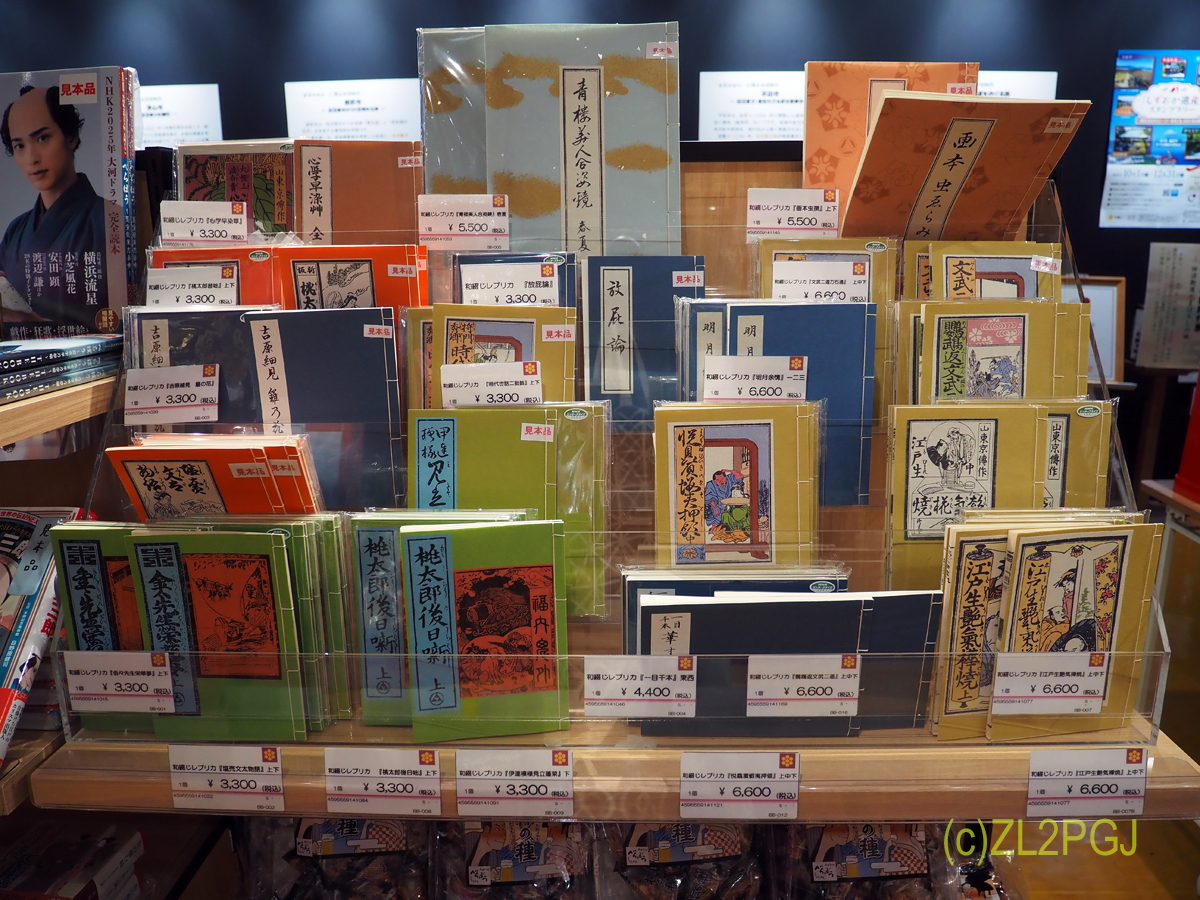 面白かったおみやげは黄表紙、緑表紙の安価な複製(オフセット印刷で1冊3000-5000円くらい、コロタイプ印刷だとヒトケタ違います)。 「あの話題の本がたったこれだけのページ数なんだ!」 という驚きです。 それで手鎖ですから、いかに当時は言論の自由がなかったか、(いまもOECD加盟国最低の国ですがジパング)
