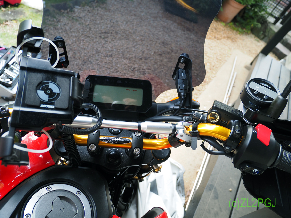 ハンドルバーの下を通して配線取り回しはこんな感じ