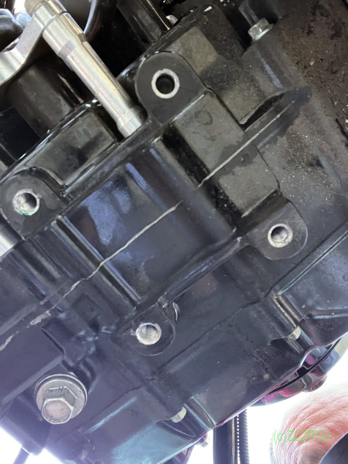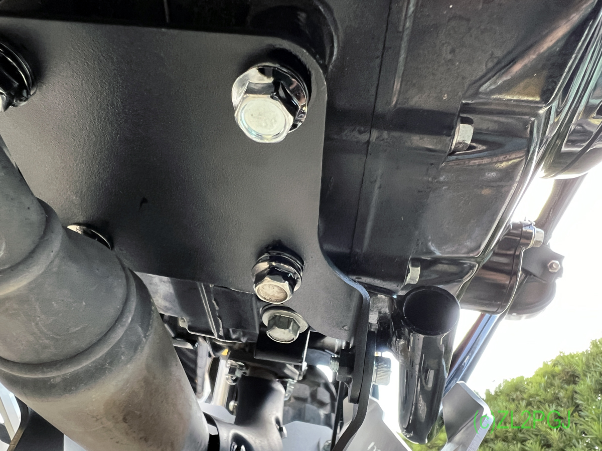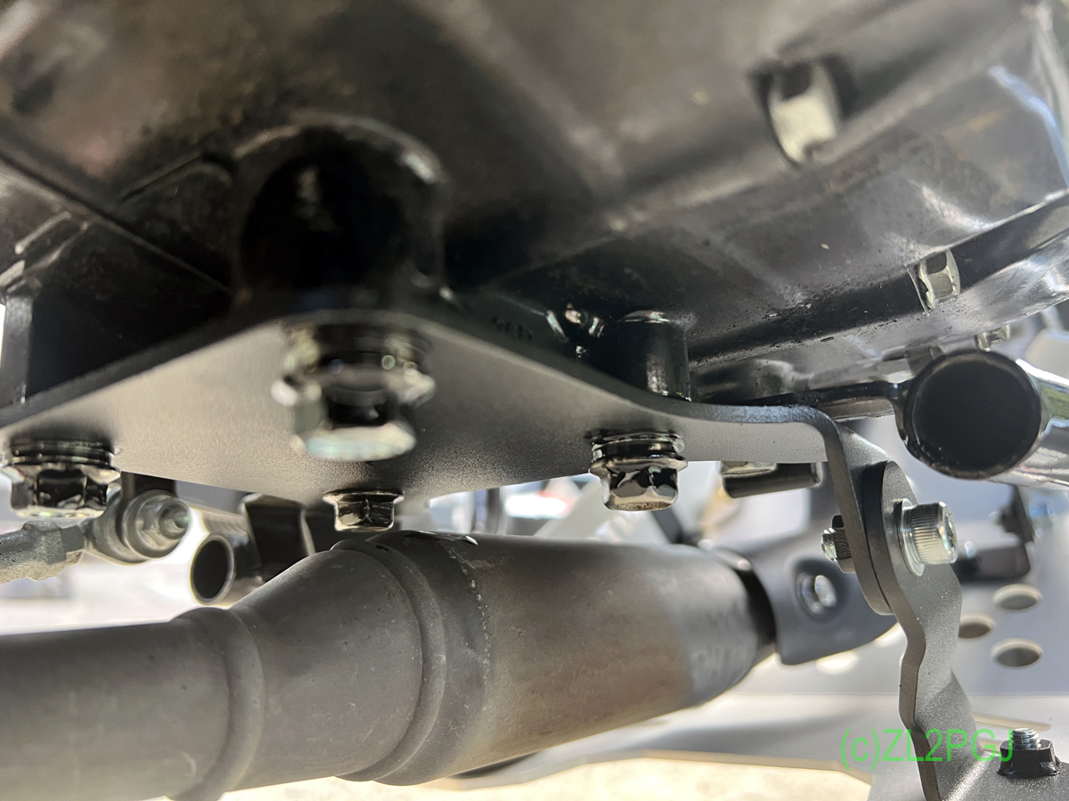 エンジン下の2つのエンジンガードとアンダーガードのそれぞれのベースステーを取り付けたところ。