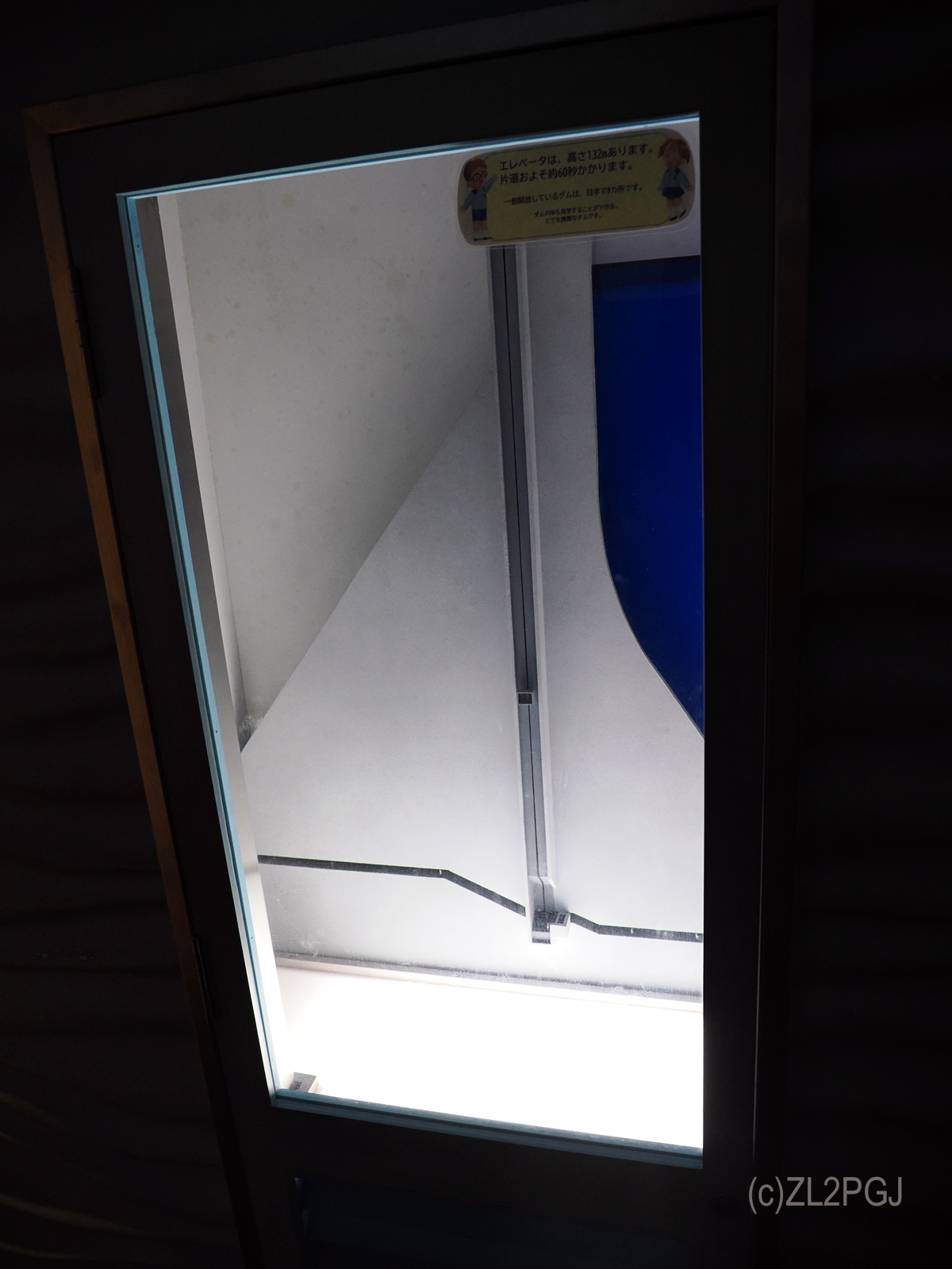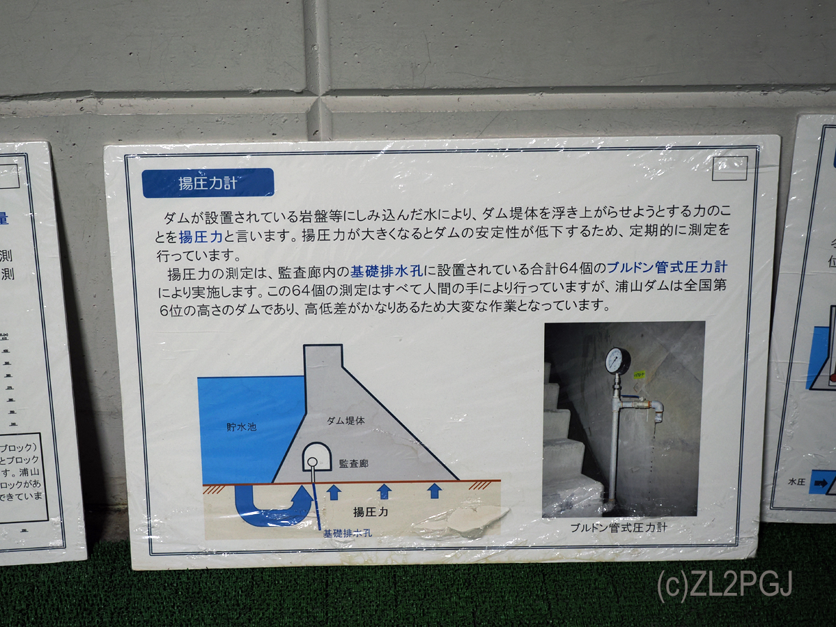 またダムは夏は堤体が熱で膨張し、冬は収縮するのだそうで、その歪みを計測する穴がてっぺんからまっすぐ掘ってあります。 鉄橋や大型タンカーが日射で伸び縮みするのは知っていましたがコンクリで固めたダム体が「伸縮するとは知らなんだ」です。