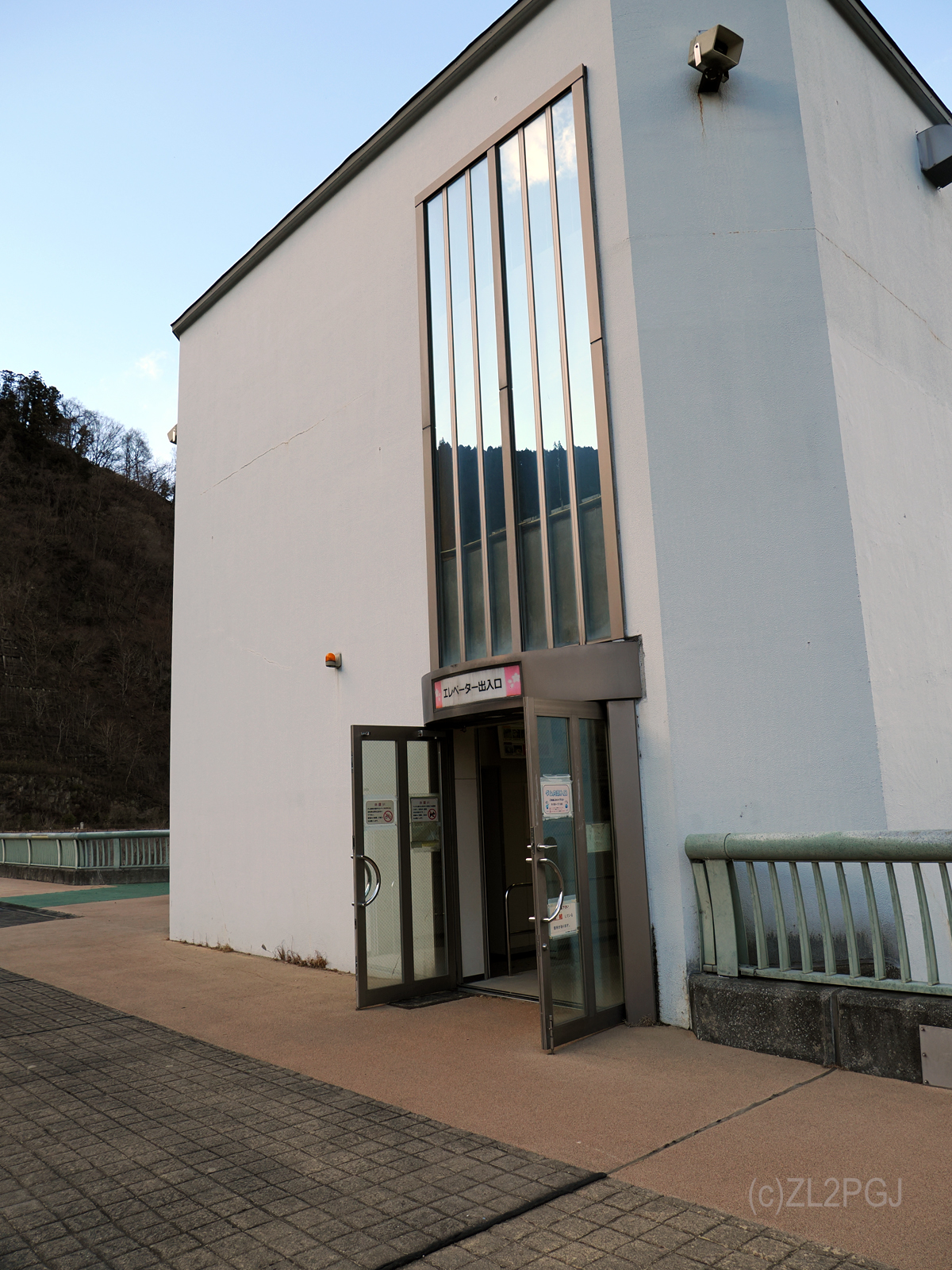 この日は風が強くてダム堤体の上を歩くと飛ばされそうですが、そこまでして歩く価値があります。 ダムの上から基部までエレベーターで降りることができます。 (無料です)
