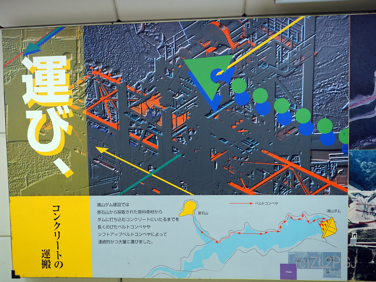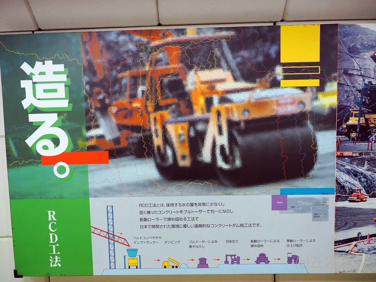 このダムはコンクリートの生産から打ち込みまですべてベルトコンベアで、しかも低水分打設だそうで、古墳時代の版築工法の現代版です