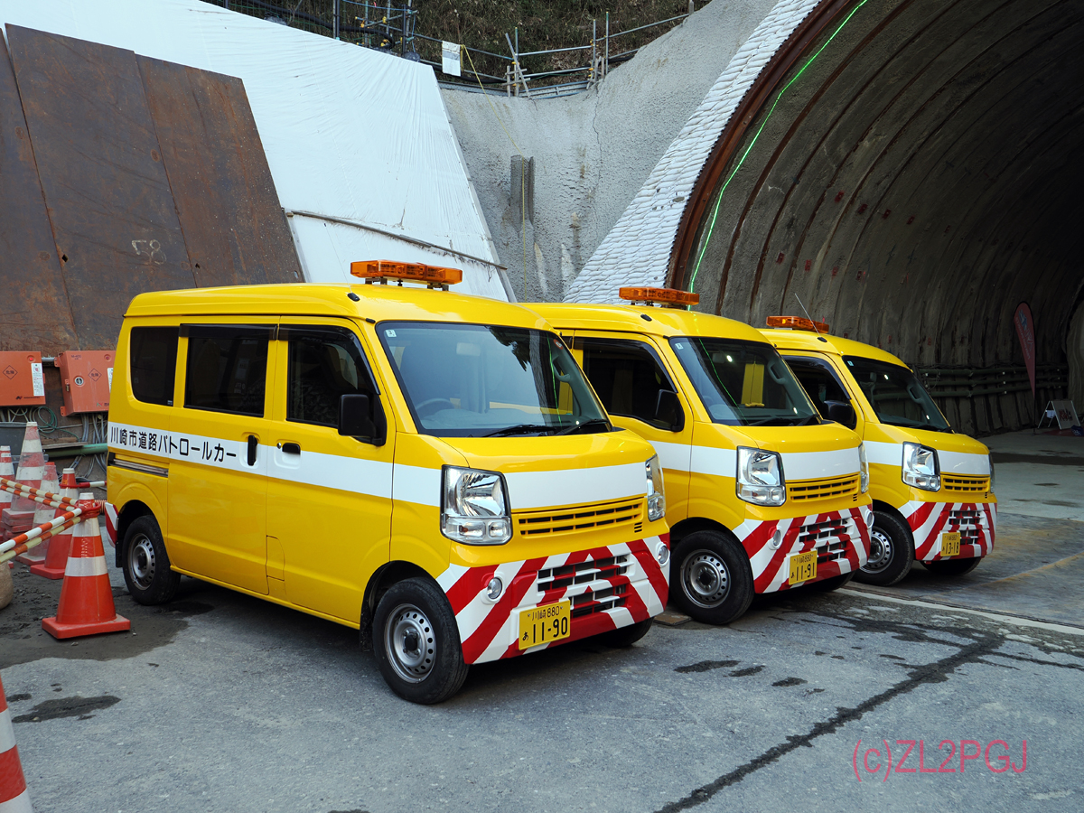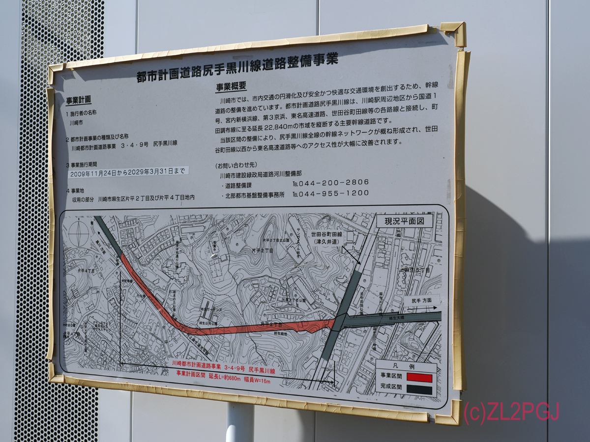 小田急新百合ケ丘の近所の市道尻手黒川線のトンネル工事現場を見てきました。 掘ってる途中のトンネル工事現場を見るのははじめてです(XYLは仕事で川崎市の五反田川放水路のシールドマシンが動いている現場に行ったことがあるそうです)。