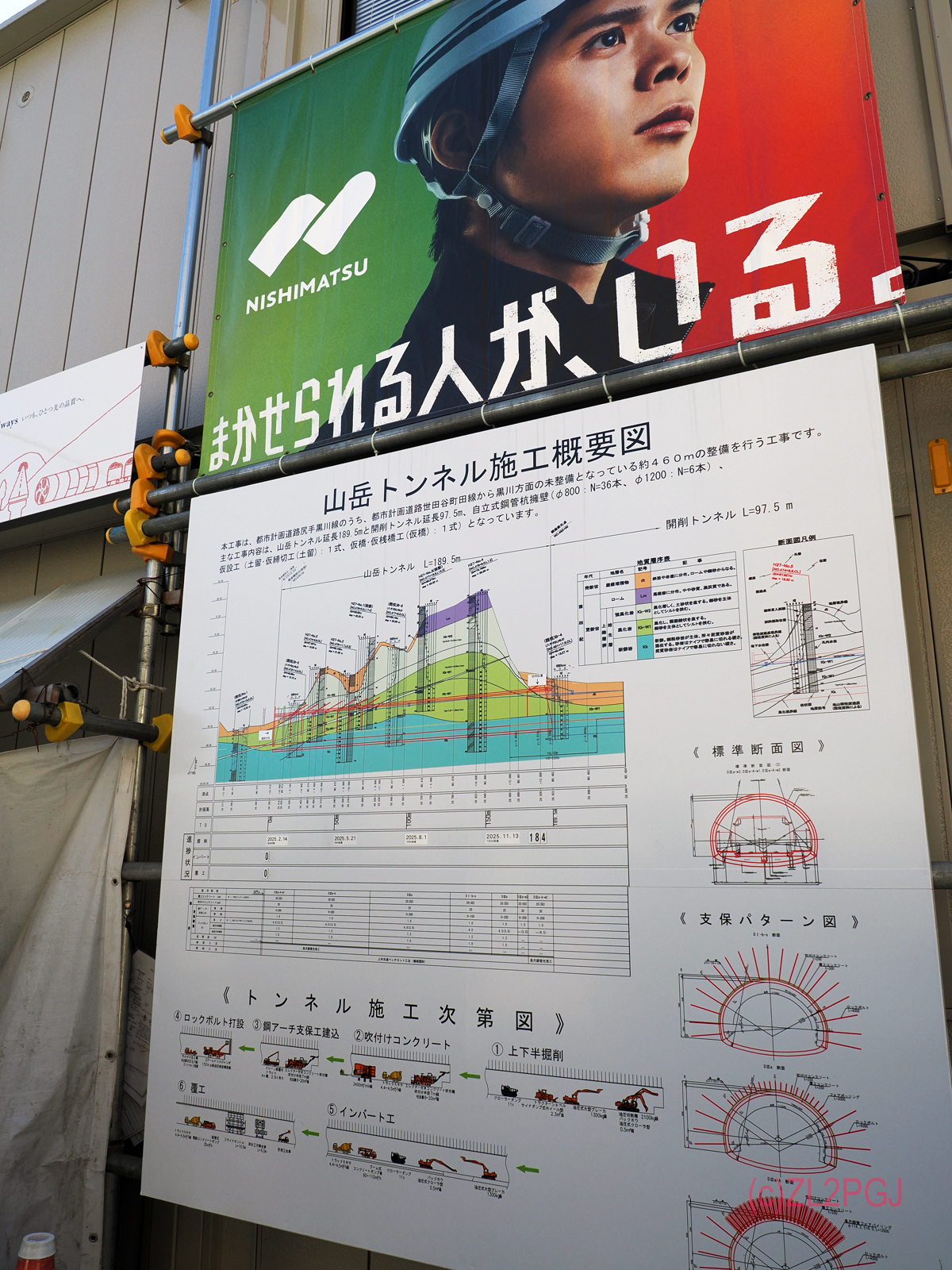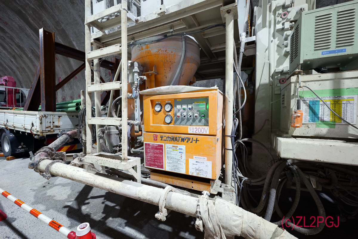 そこで「新オーストリアトンネル工法(NATM)」で掘っております。 NATMというと「ダイナマイトで発破かけて」な山岳トンネルで一般的な方法ですが、発破かけないで重機でゲシゲシ削る方法もあるようです。 周りが住宅地なので、ここでもゲシゲシ方式。