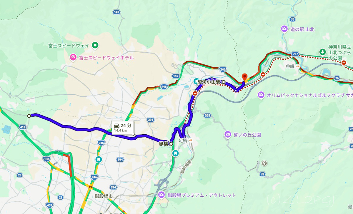御殿場まで来ると箱根のR1、伊豆の熱函道路、R246、並走する県道、東名が閉鎖だと言うので、足柄峠か?と思ったのですが小山町の町道がガラ空きのようでしたので、そこを通って246の神奈川県区間へ紛れ込んで帰ってきました。