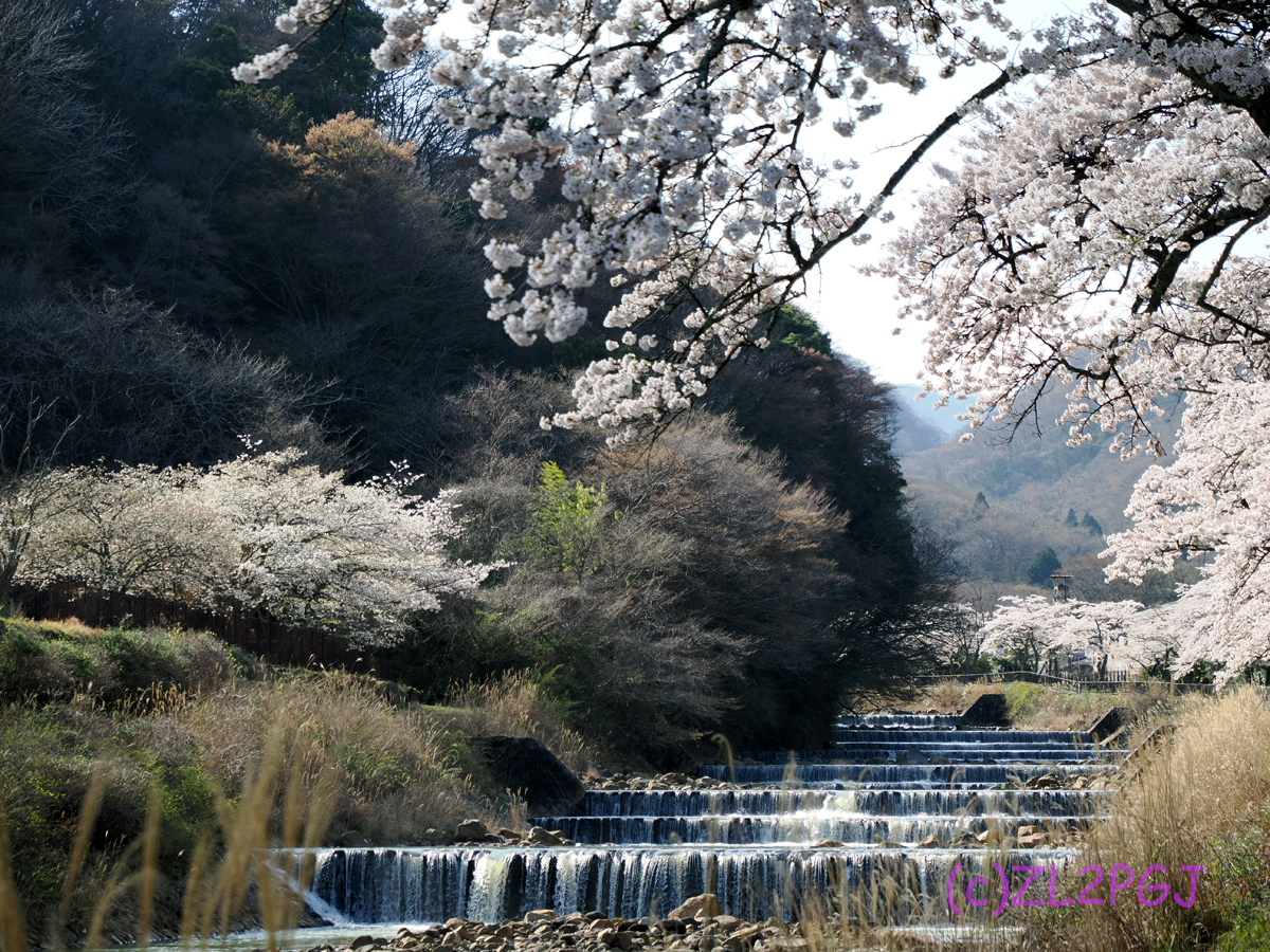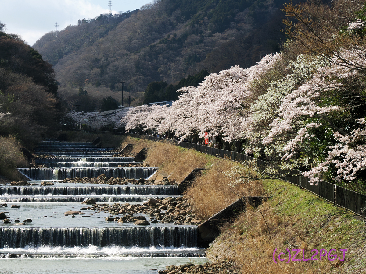 外輪山モーターウェイを降りてくると、宮城野では早川土手の桜が見頃でした。
