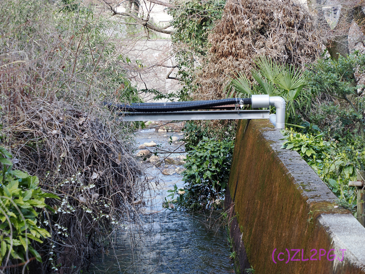 こちらは一応温泉があります。 対岸の源泉井戸から引っ張っている配管がこちら