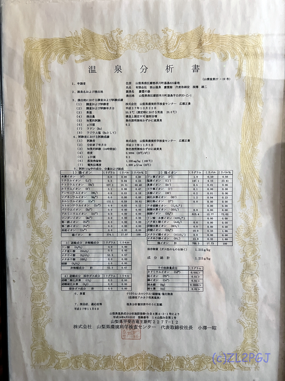 すべての浴槽について10年以内の分析書と利用許可証の掲示が必要ですが。