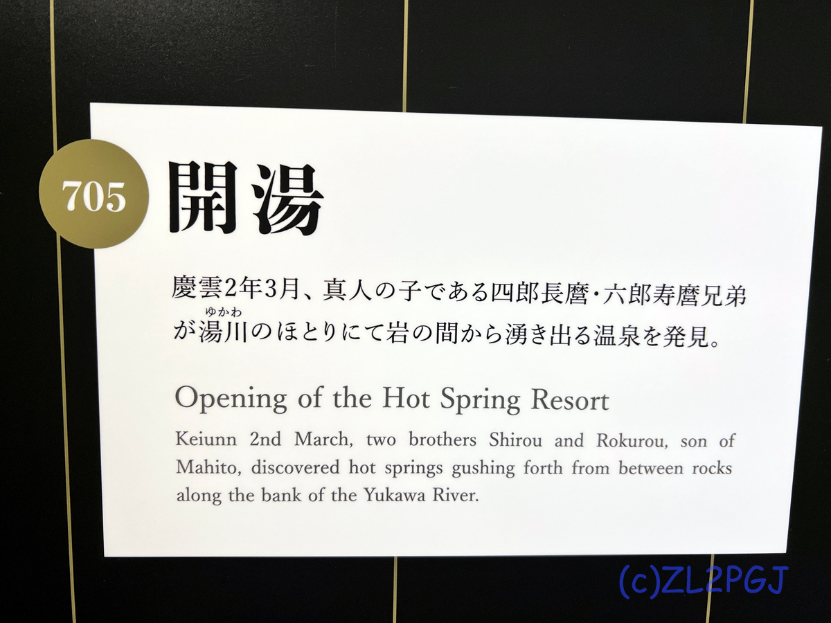 湯治、「温泉に使って治療するから」湯治。 湯治効果が出るには「10日は逗留しないとね」と温泉科学の人々は言っておりますから、医療や健保が発達する前の時代には賑やかな業態だったのでしょう。 こちらのホテルも湯治客が絶え、団体旅行も絶え、で高額商品型のホテルに経営方針を変えたのだそうです。 そこいらの話は今年新たに作った歴史室で紹介されています。