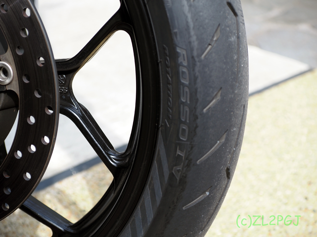 慣らしで終了で感じたのは、ブレーキングでABSが動作しないくらいバッチリグリップするフロントタイヤ。 フロントブレーキを強化したかのように感じます。